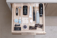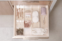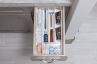 Nothing feels better than opening an organized drawer! The Sydney custom drawer organizer has a spot for each of my favorite bathroom essentials.