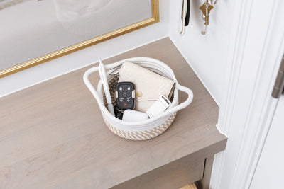 It’s all in the details. A thoughtfully curated collection of containers to hold your cotton balls, makeup brushes and favorite necklaces.