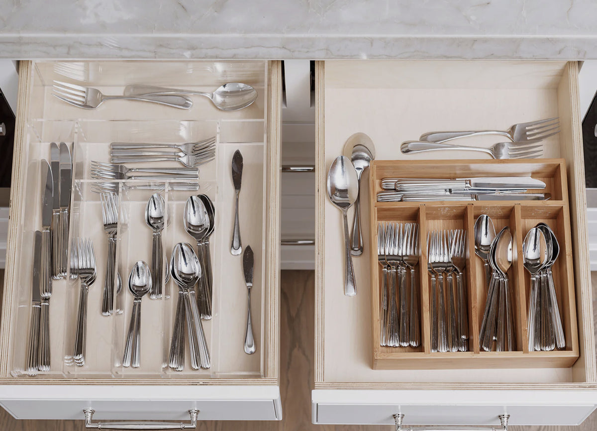 Many drawer organizers are made from bamboo or rubber that wear down over time and are difficult to keep clean.