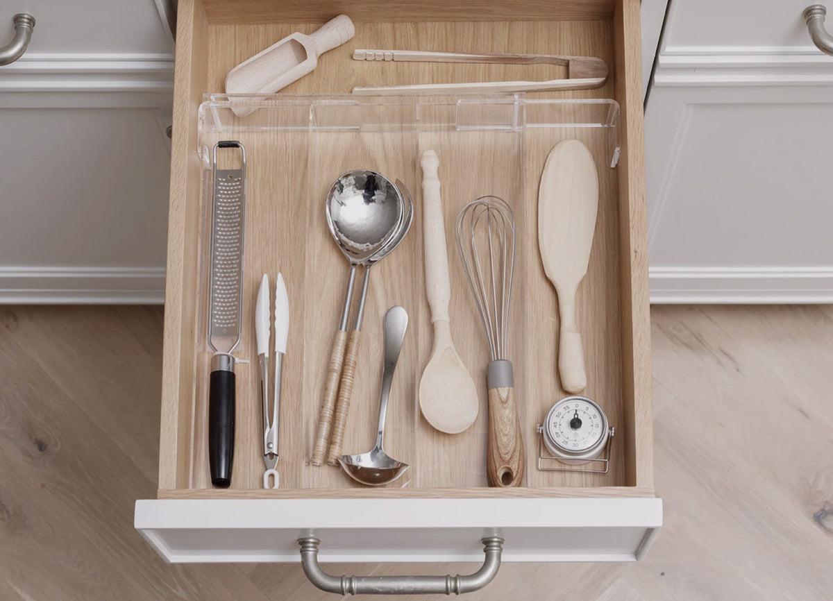 Your organizer is built to the drawer dimensions you enter in the product builder above. Width, length, and height work together to determine compartment layout and pricing.